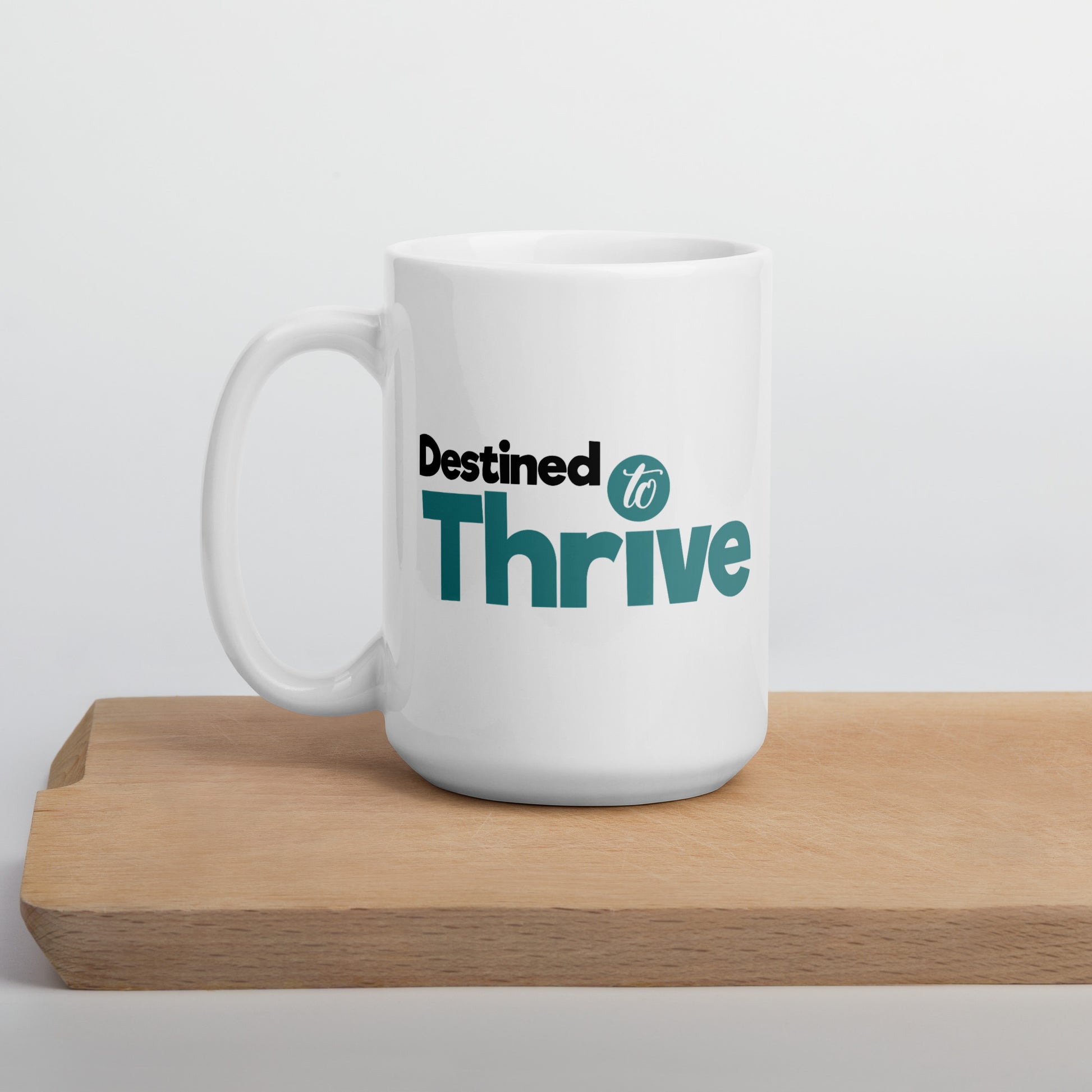 Immerse yourself in inspiration with every sip from our "Destined to Thrive" white glossy mug, featuring powerful prints on both sides. Expertly crafted to be a delightful part of your daily rituals, this mug is perfect for morning coffee, evening tea, and everything in between. A fusion of durability and style, it boasts a robust structure and a sleek, glossy finish, ensuring that it stands the test of time and frequent usage.