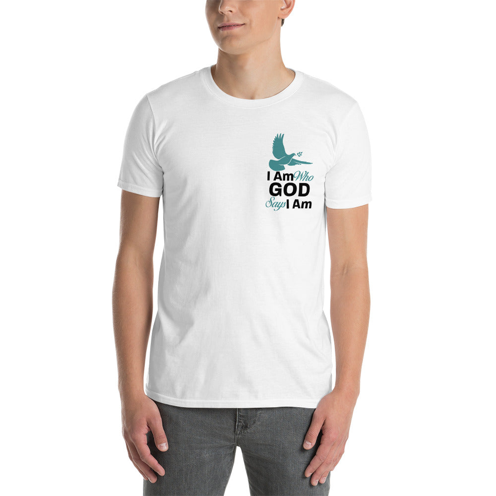 Embrace Your Faith - Left Breast Print 'I Am Who God Says I Am' - Unisex Cotton T-Shirt with Durable Stitching